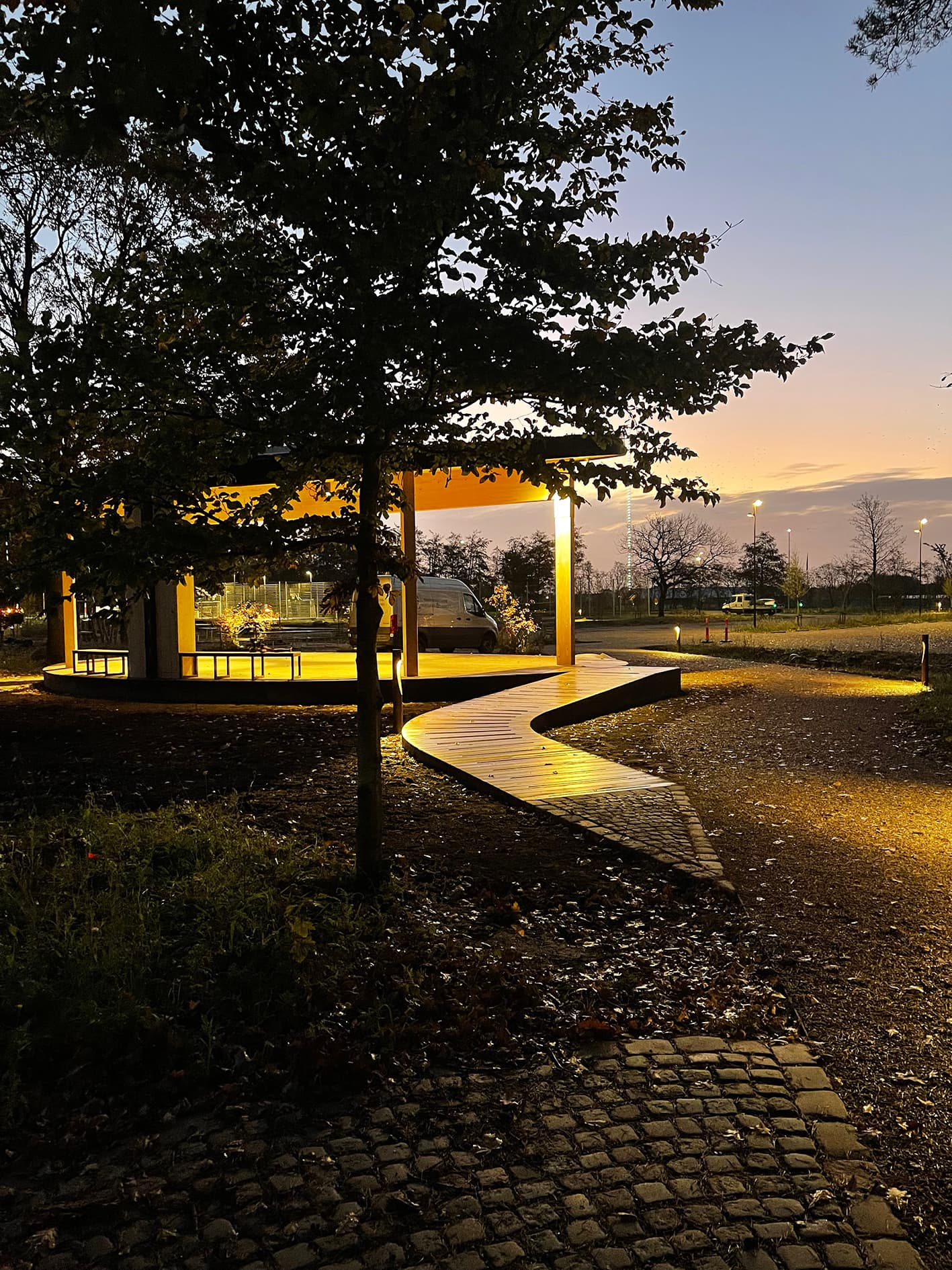 Gjerulff & Lassen har opført den nye aktivitetspavillon i Aktivitetsparken i Skive – et centralt element i den samlede udvikling af Idræts- og Kulturparken. Pavillonen er designet til at understøtte en bred vifte af aktiviteter og fungerer som scene, udstillingsrum, mødested og udendørs træningsareal. Med en hævet konstruktion og belysning skaber den et naturligt samlingspunkt, der kan bruges hele dagen og aftenen.