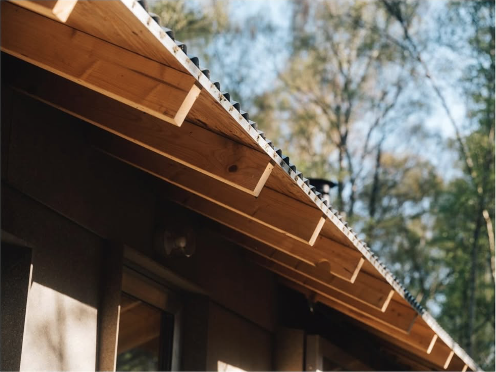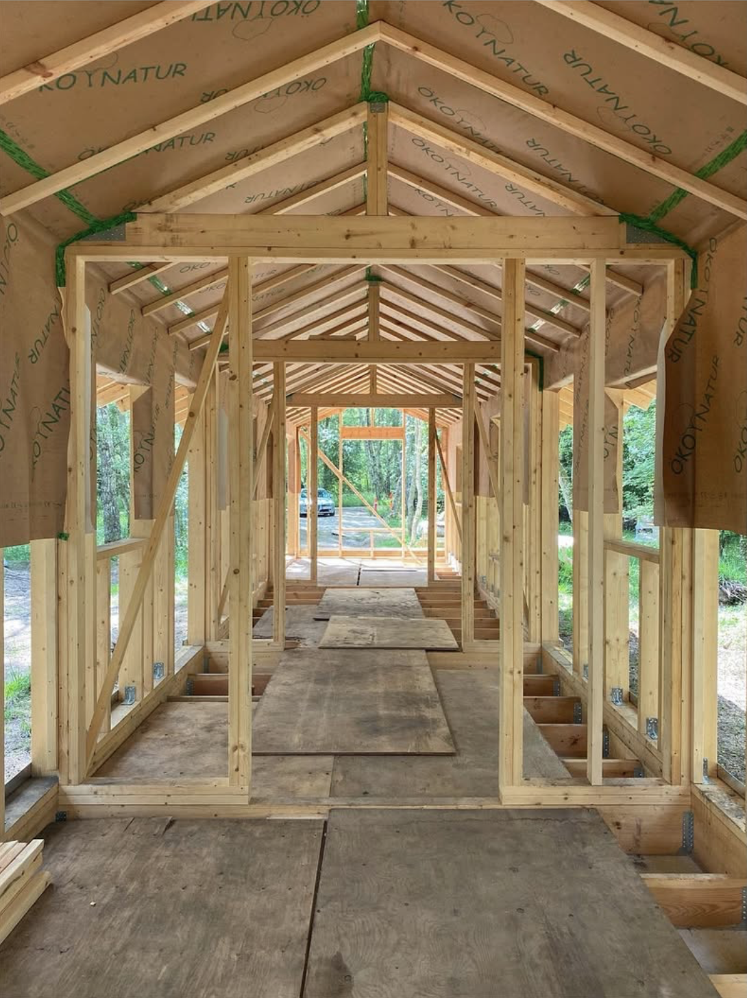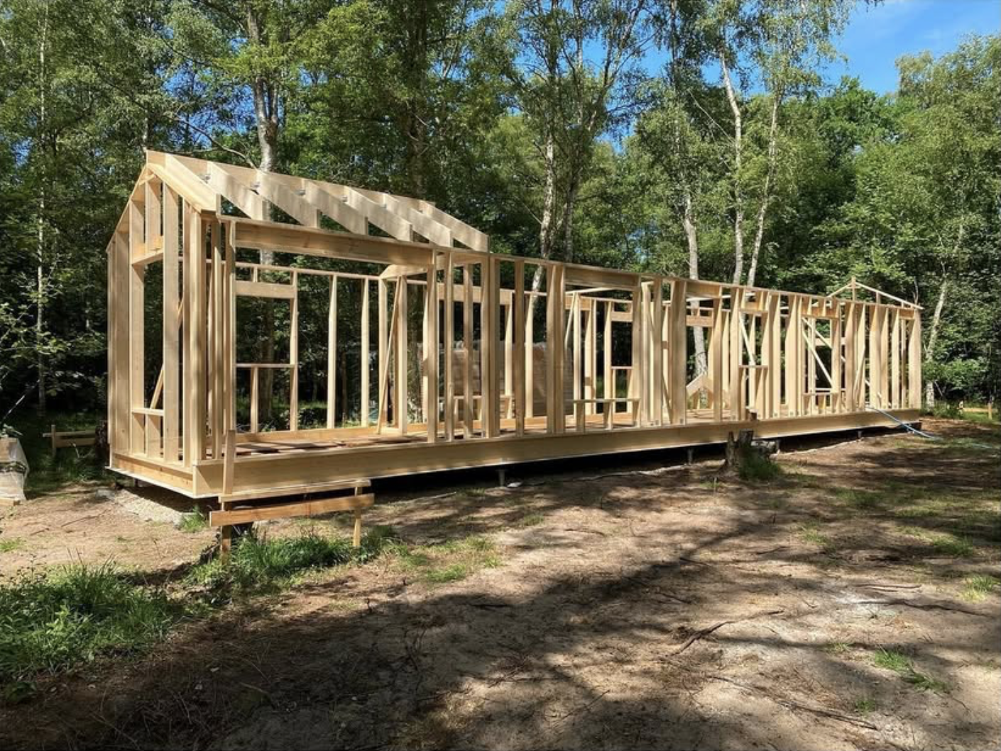 • Konstruktion: Let trækonstruktion med synlige bærende elementer.