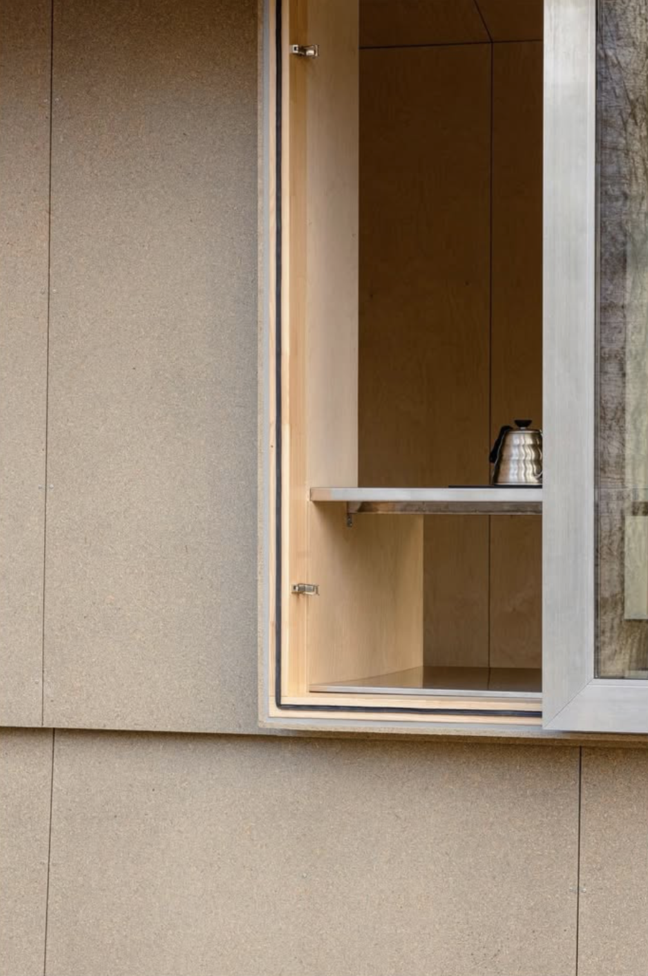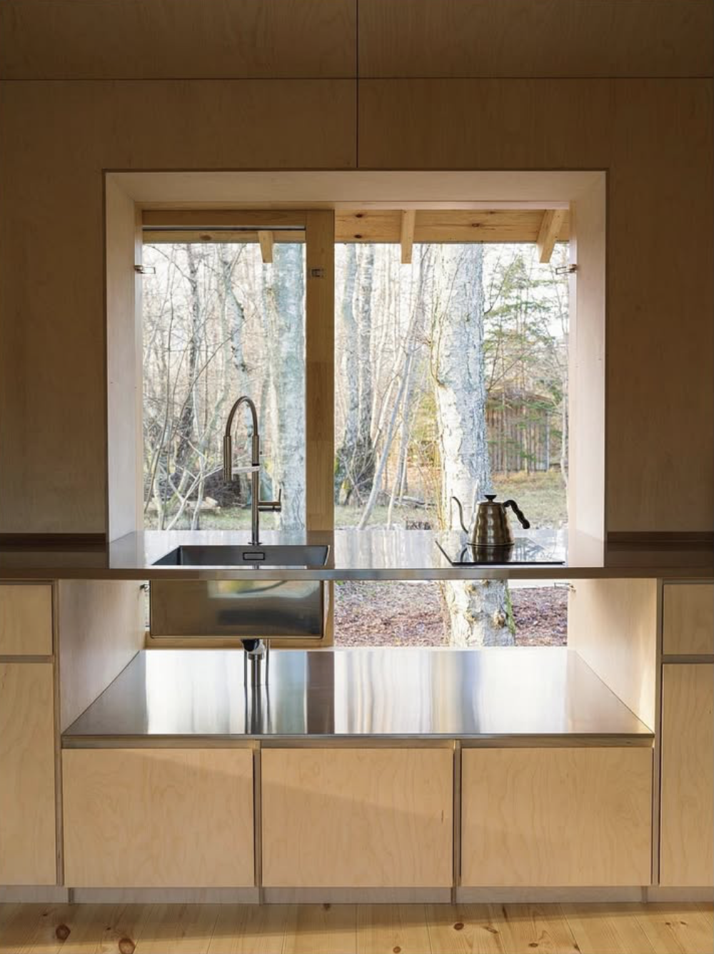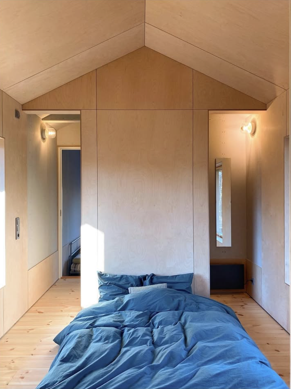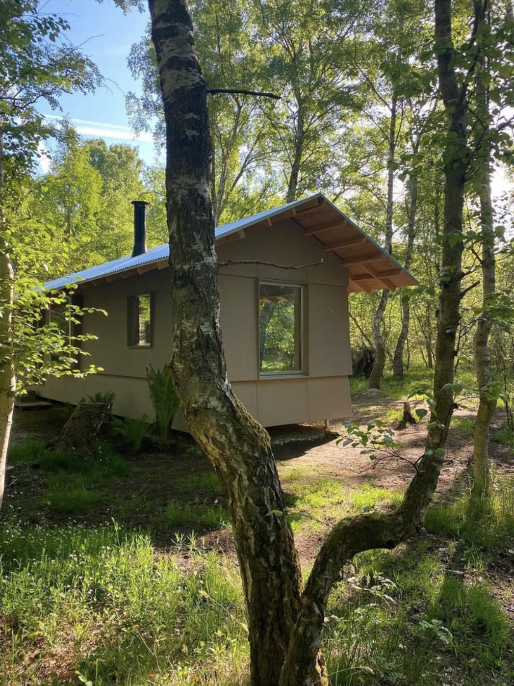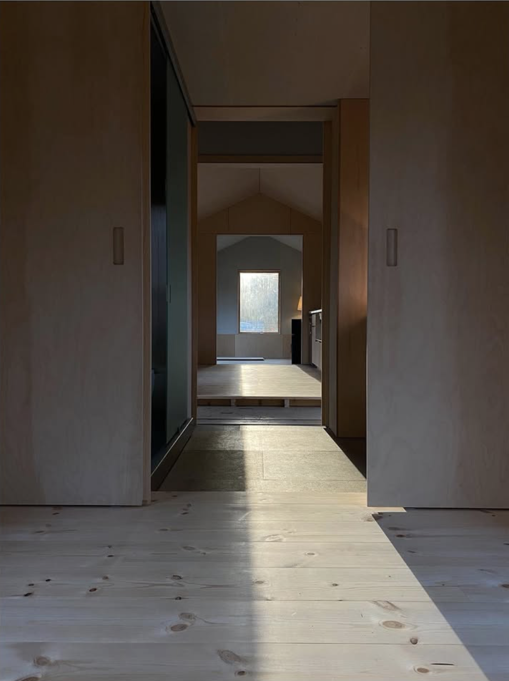 I skovens rolige omgivelser står dette sommerhus som et eksempel på, hvordan arkitektur kan eksistere i harmoni med naturen. Byggeriet er udført uden betonfundament og hviler i stedet på spiralformede søjler, hvilket bevarer skovbunden og minimerer miljøpåvirkningen. Husets lette trækonstruktion og beskedne materialevalg skaber en næsten svævende fornemmelse, der understreger projektets bæredygtige tilgang.