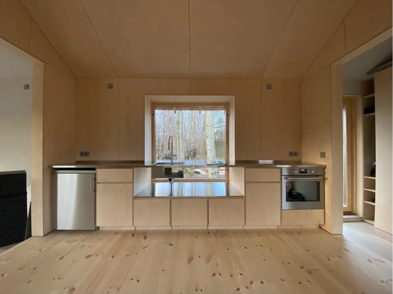 • Indvendige overflader: Birkekrydsfiner, anvendt strategisk for at minimere materialeforbrug.