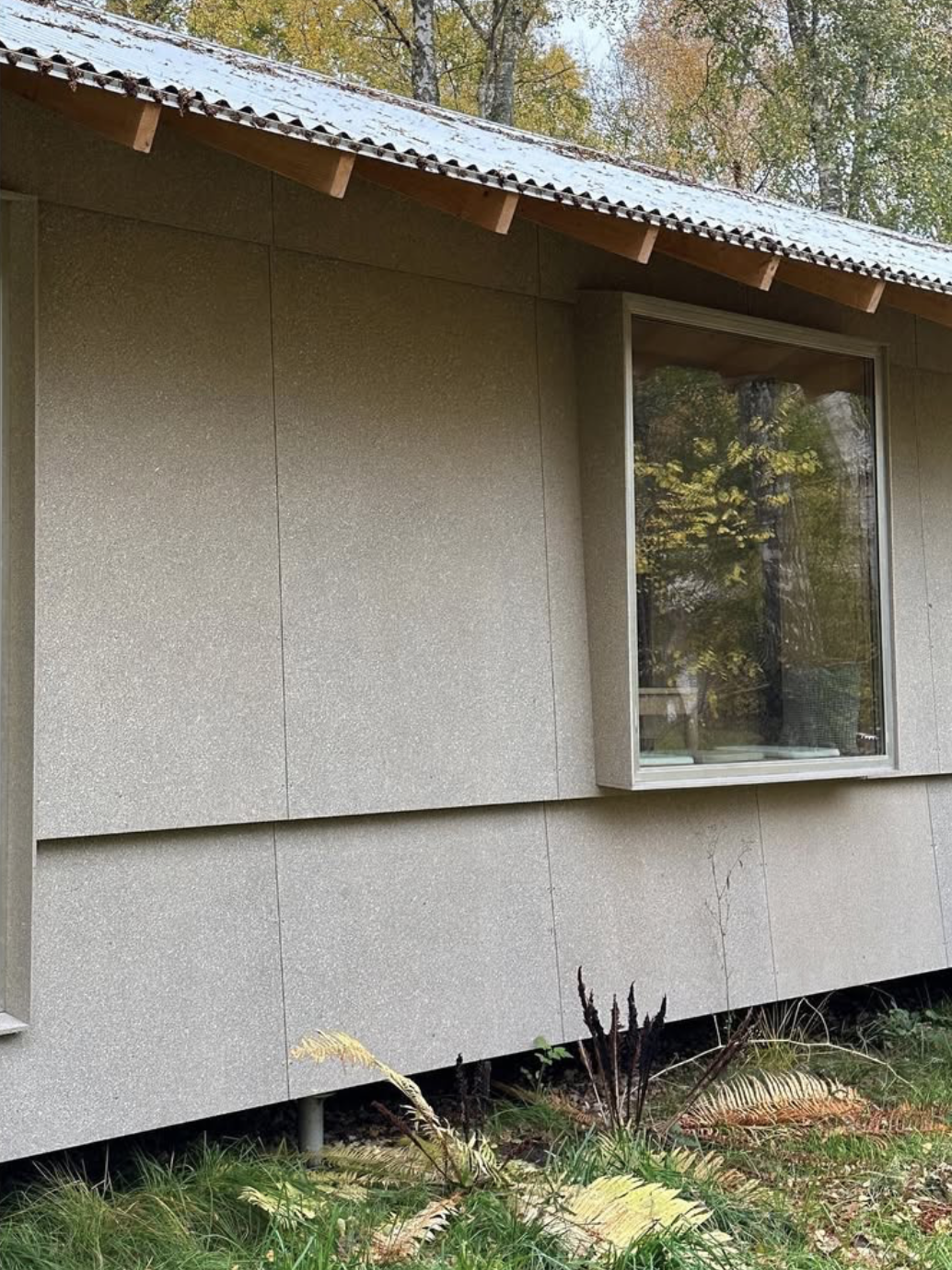 • Facade: Slanke træplader, der danner skyggefulde linjer og skaber et let udtryk.