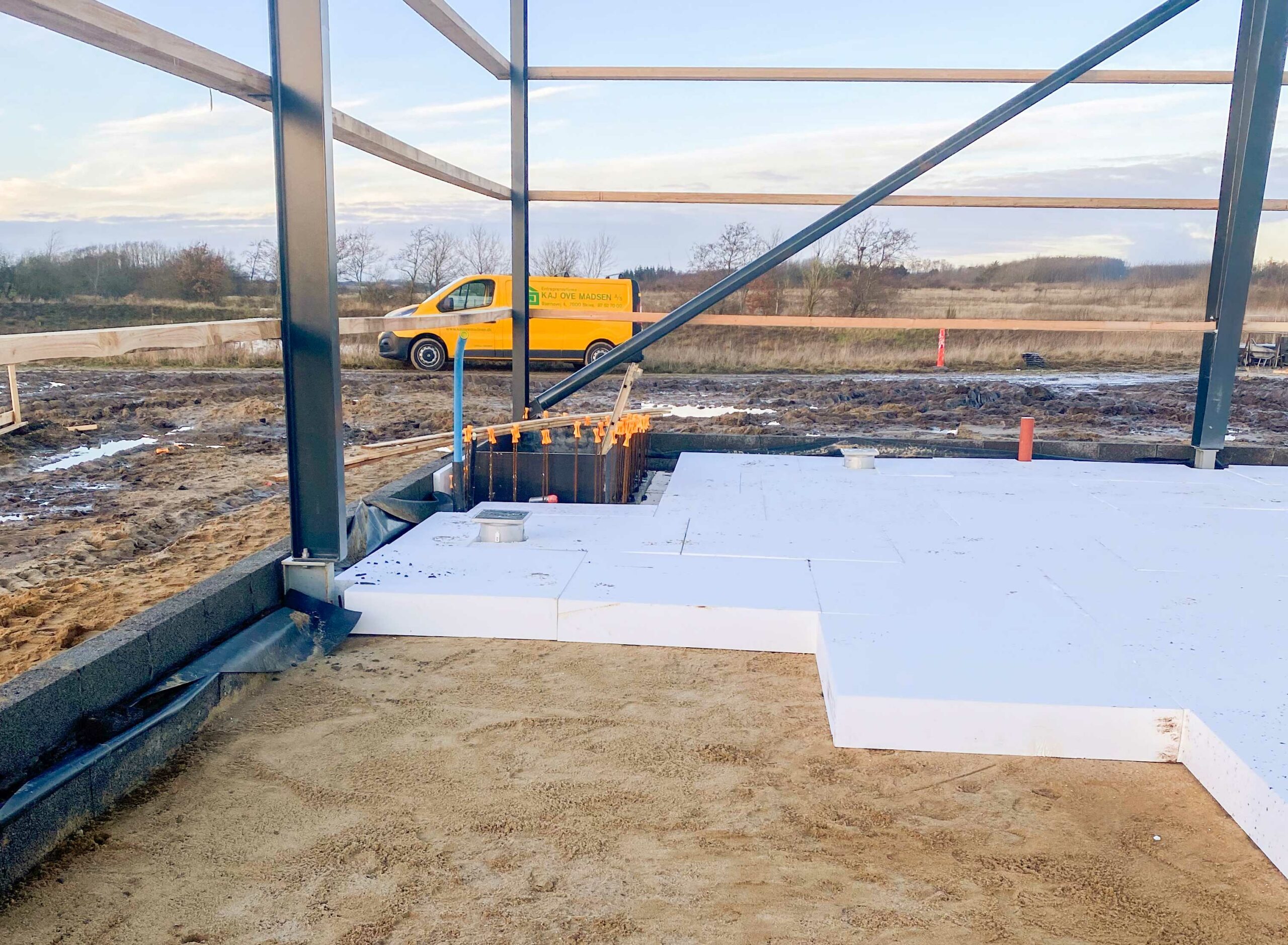 Bygningen er opført som en traditionel og gennemprøvet konstruktion med fokus på holdbare materialer og enkel, effektiv drift. Den bærende konstruktion består af stålrammer på punkt- og linjefundamenter med terrændæk i beton, hvilket giver en stabil og fleksibel bygning med god plads til tekniske installationer og maskinel. Facaderne er udført i profilerede stålplader kombineret med isoleret vægopbygning, som sikrer et robust klimaskærm med lavt vedligeholdelsesbehov.