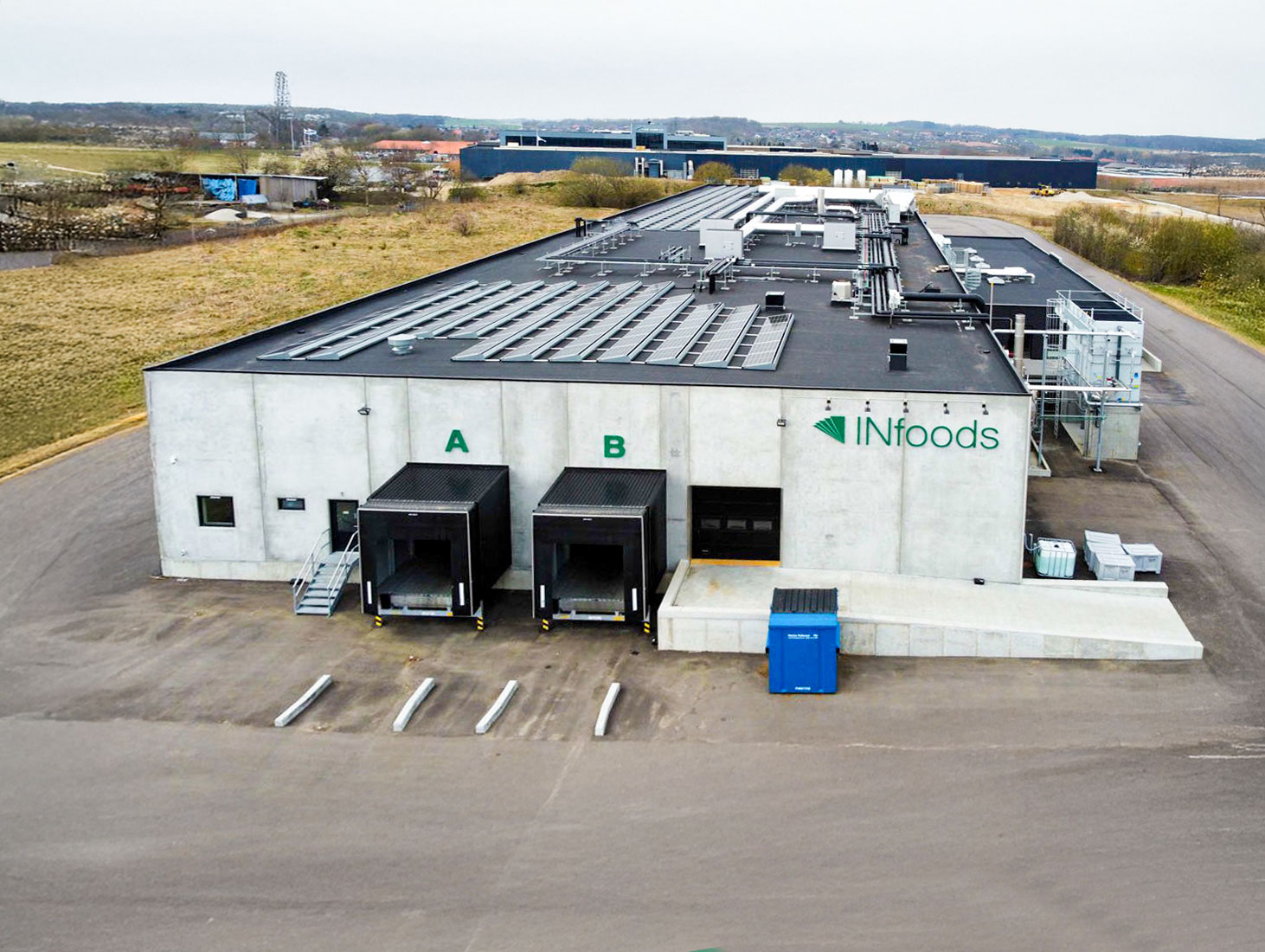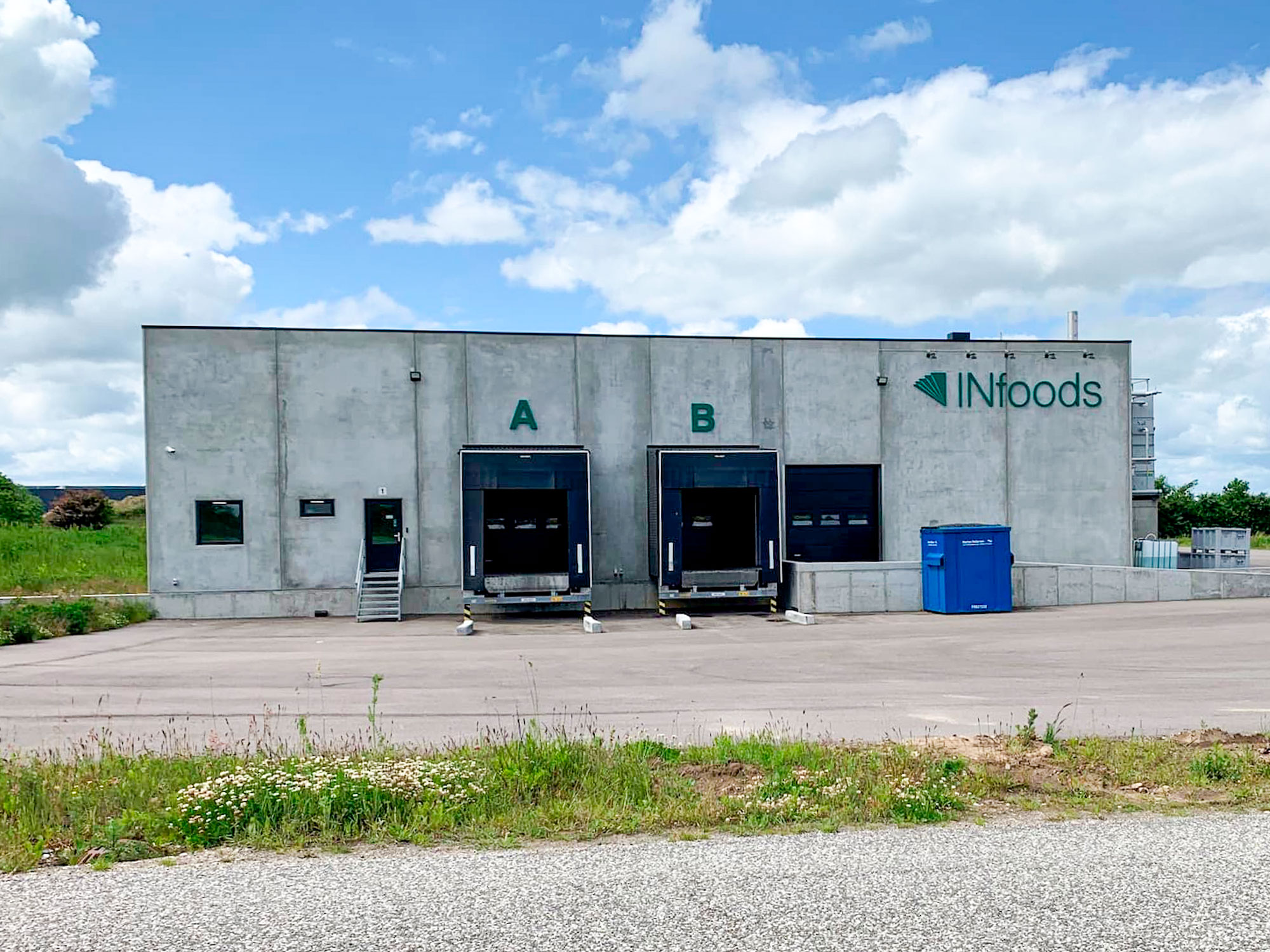 På Scandiavej i Låsby har vi opført en ny samlet produktions- og administrationsbygning for INfoods A/S. Projektet omfattede i alt 3.514 m² fordelt på ca. 3.020 m² produktionsareal og 494 m² administration – udført i hovedentreprise.