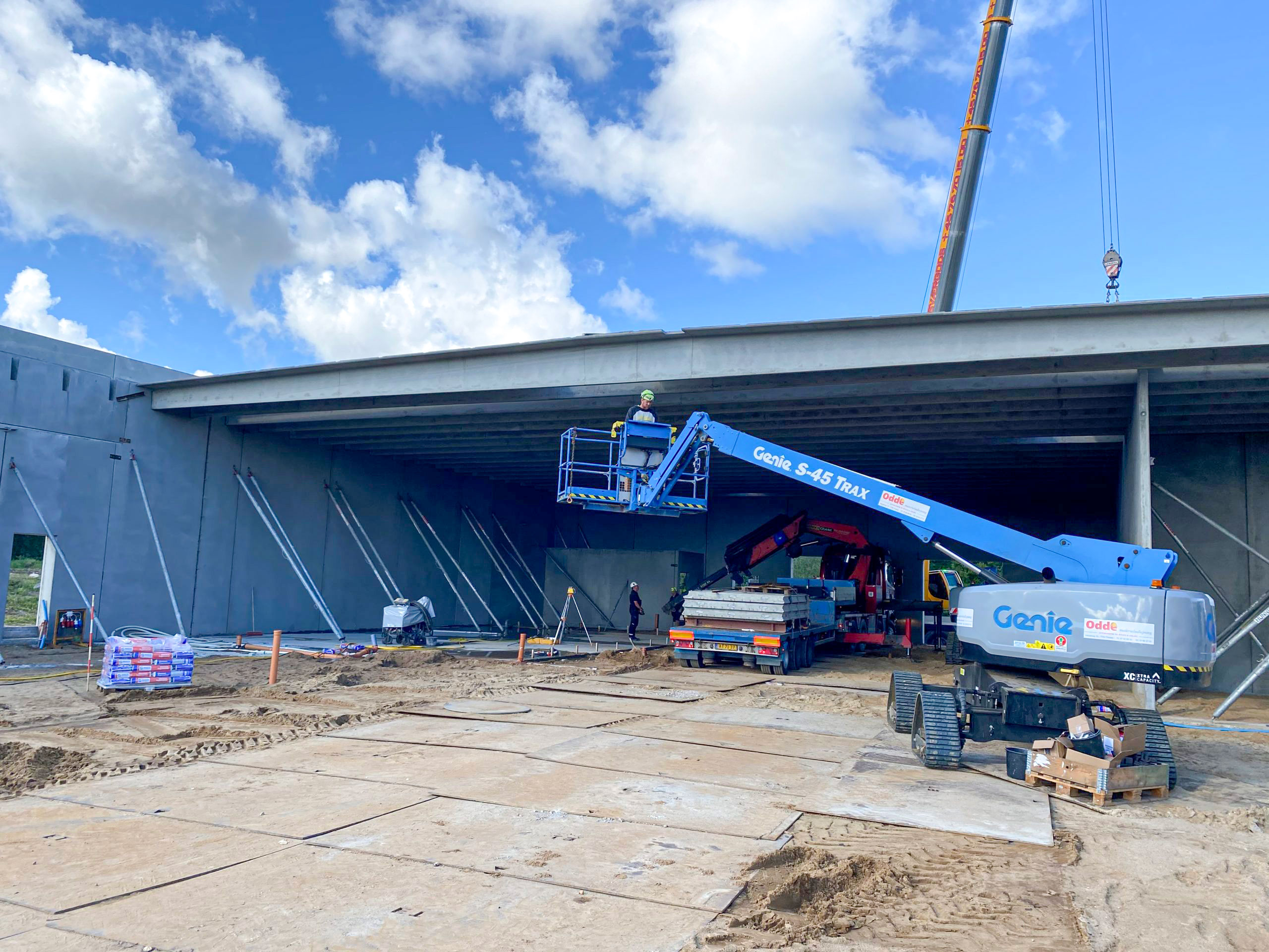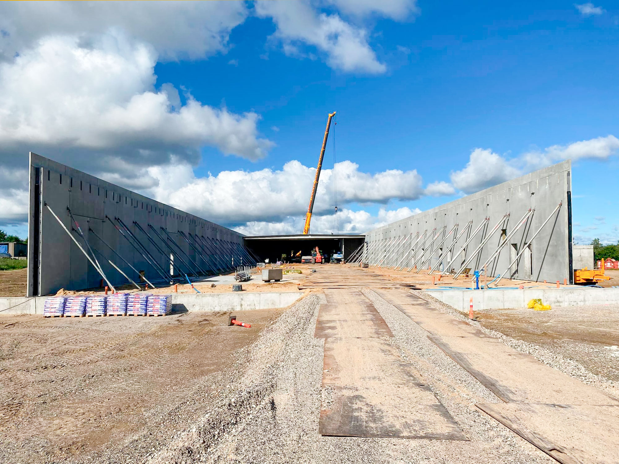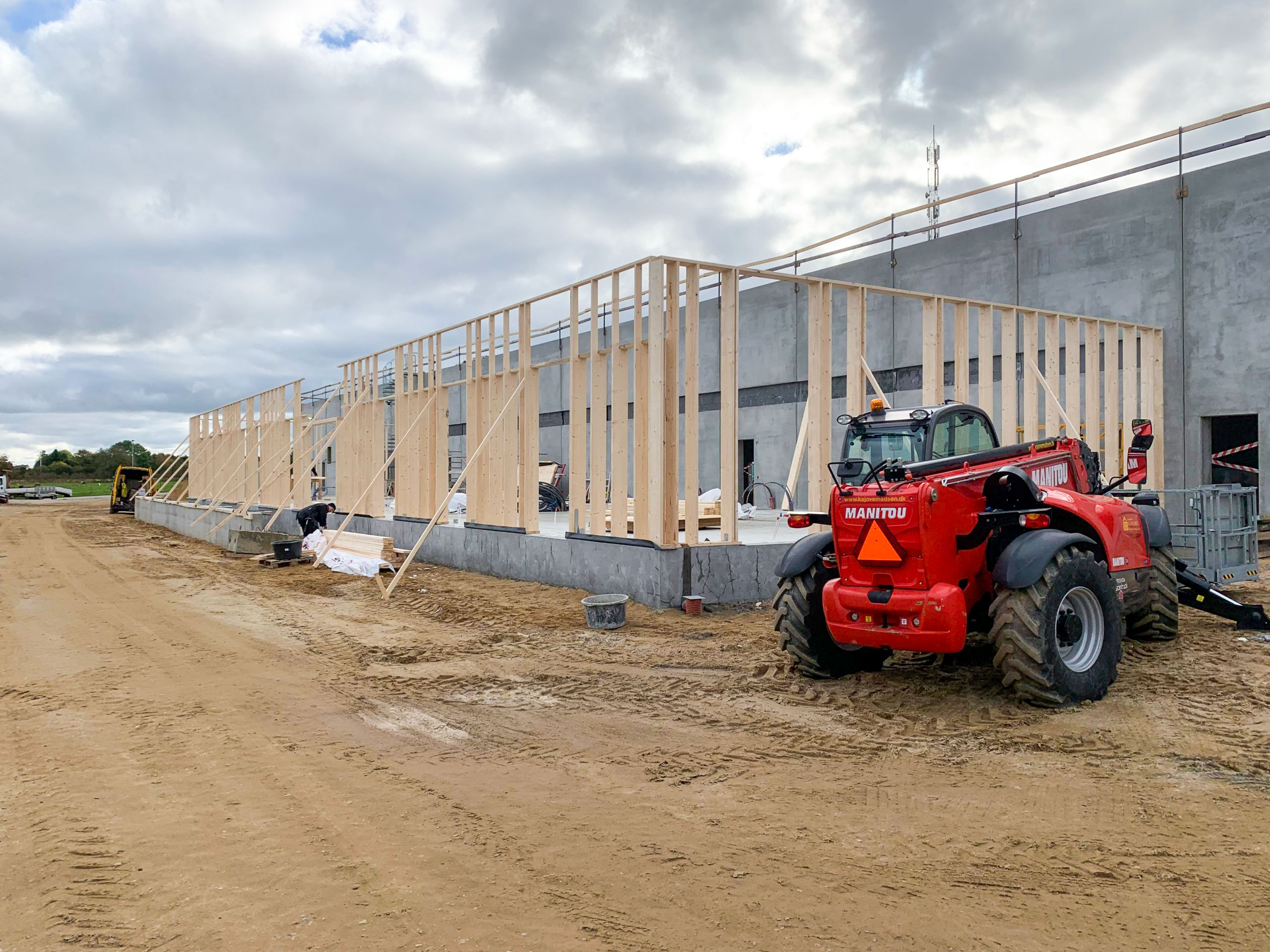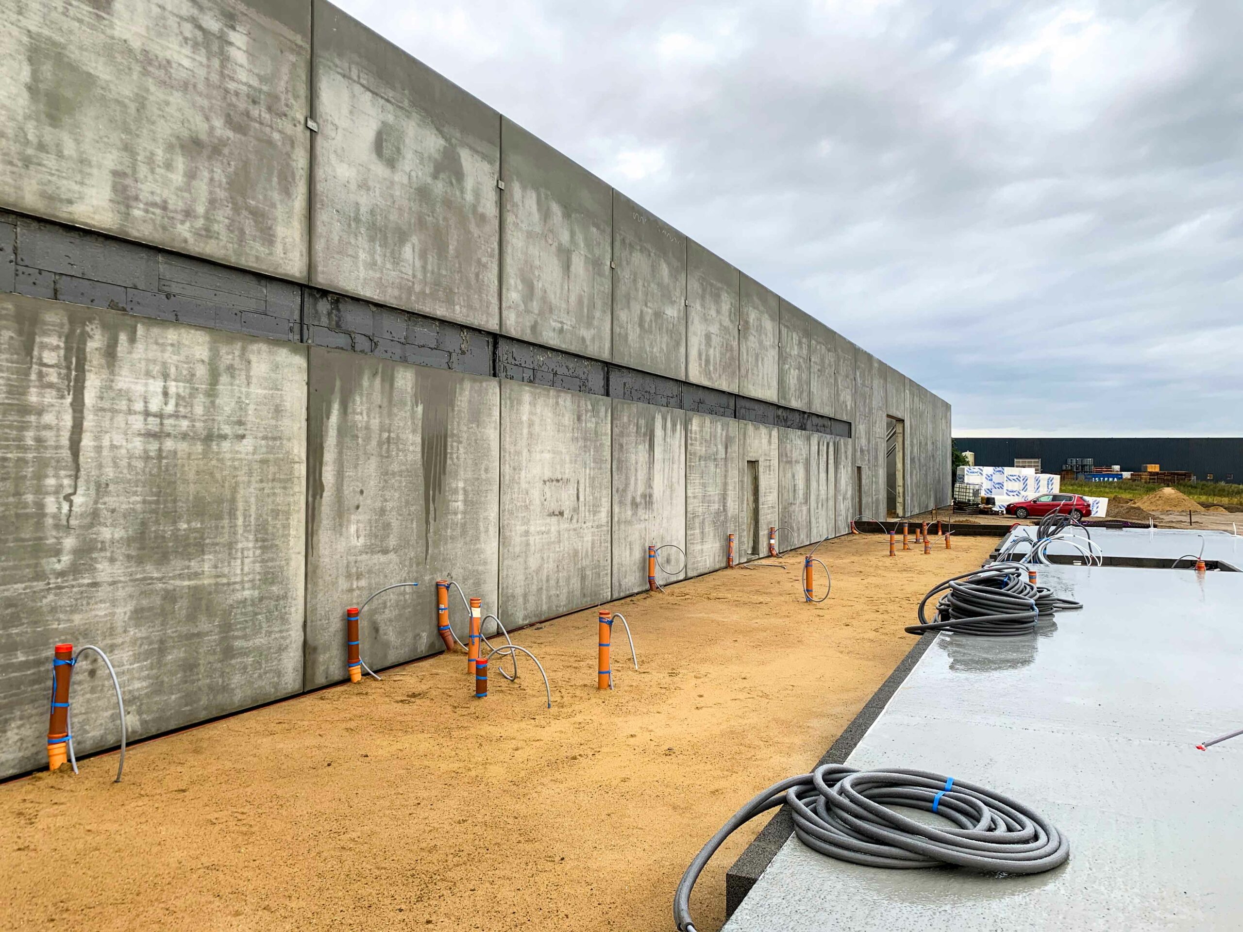 Som hovedentreprenør udførte vi alle bærende og klimaskærmsrelaterede fag: jord, kloak, belægning, beton, betonelementer, murer-, tømrer- og malerarbejde, stålkonstruktioner samt montage af porte, døre og læssebroer.