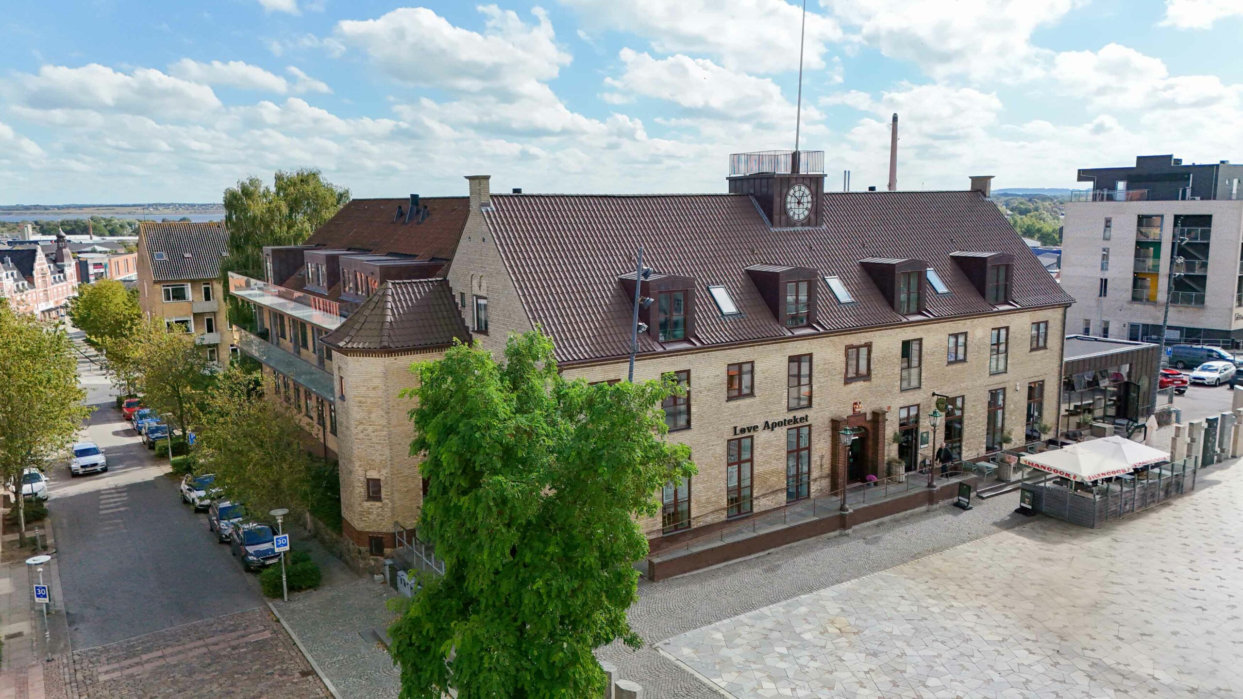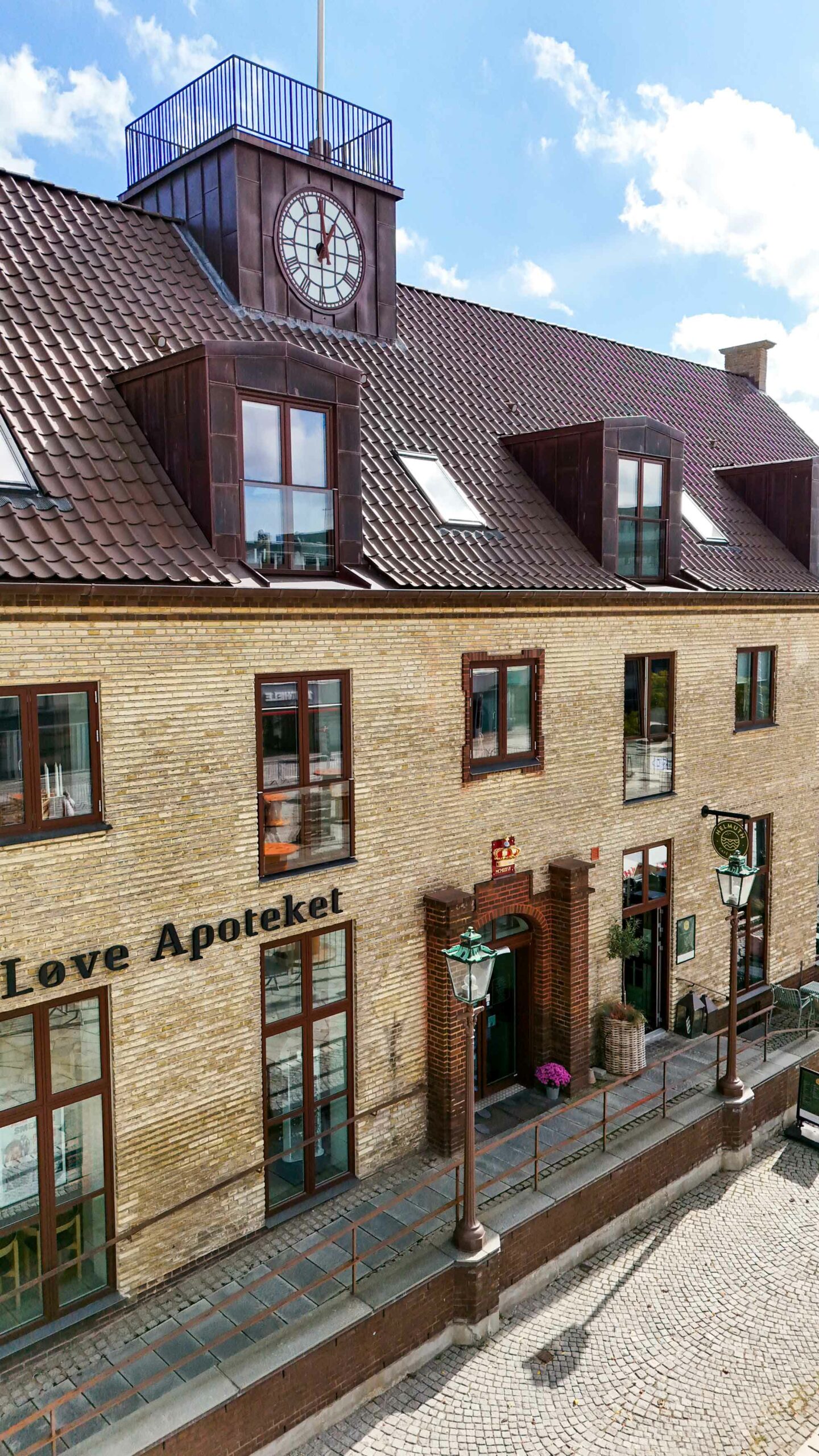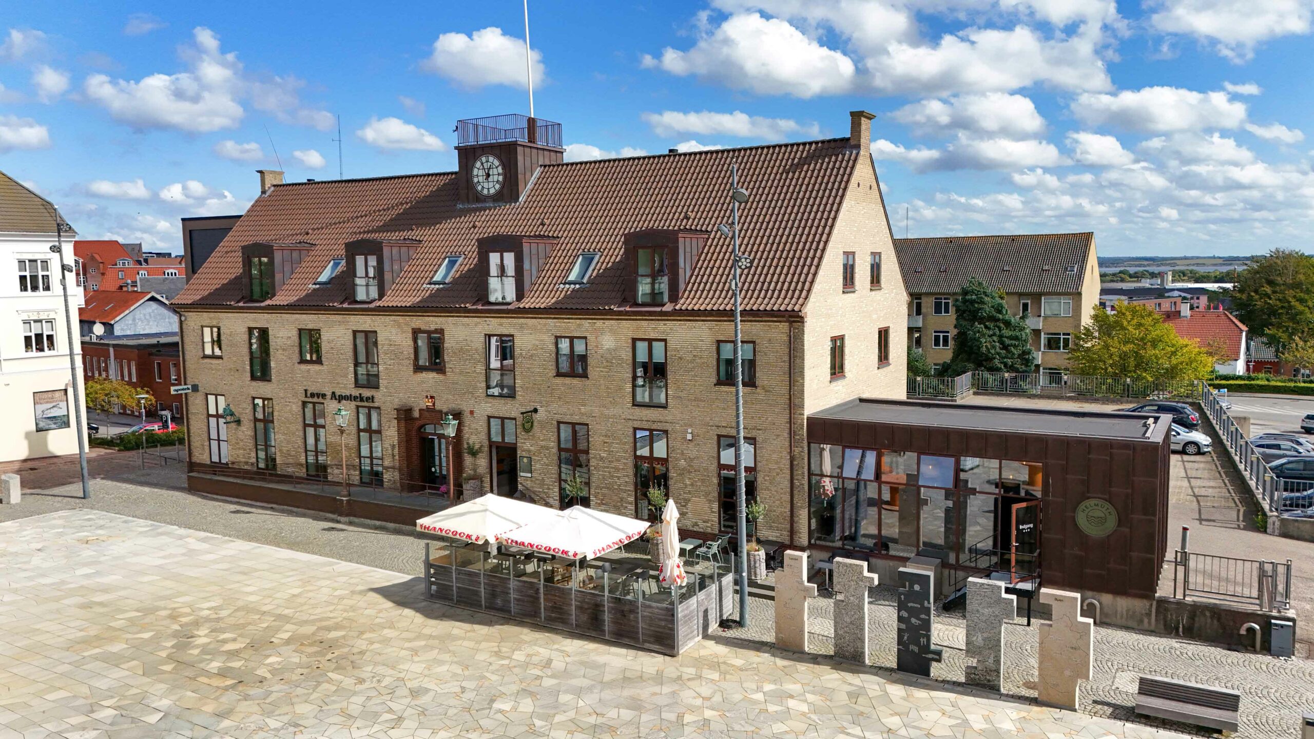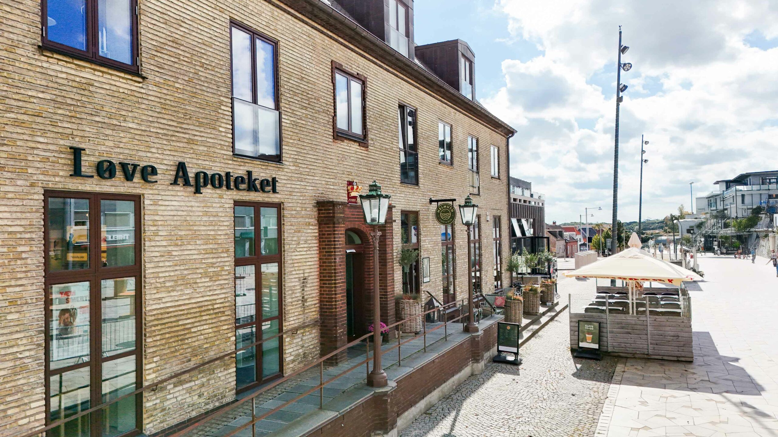 I stueetagen er bygningen i dag udnyttet til erhverv med restaurant og apotek vendt ud mod torvet, herunder Cafe Helmuth og Løve Apoteket. Første etape omfattede ombygningen af det tidligere posthus til en moderne og funktionel café med nyt køkken, barområde og et stort sammenhængende opholdsareal for caféens gæster. Som en del af udvidelsen er der opført en ny tilbygning i form af en vinterhave/orangeri, placeret i forlængelse af bygningens gavl og udført i kobber og glas. Tilbygningen er holdt i samme materialemæssige logik som den eksisterende bygning, men med et nutidigt arkitektonisk udtryk, der både inde og ude skaber et taktilt og sanseligt rum. Løsningen fungerer i tæt samspil med det gamle posthus og understøtter samtidig en moderne restaurantfunktion med store vinduespartier og direkte kontakt til torvet.