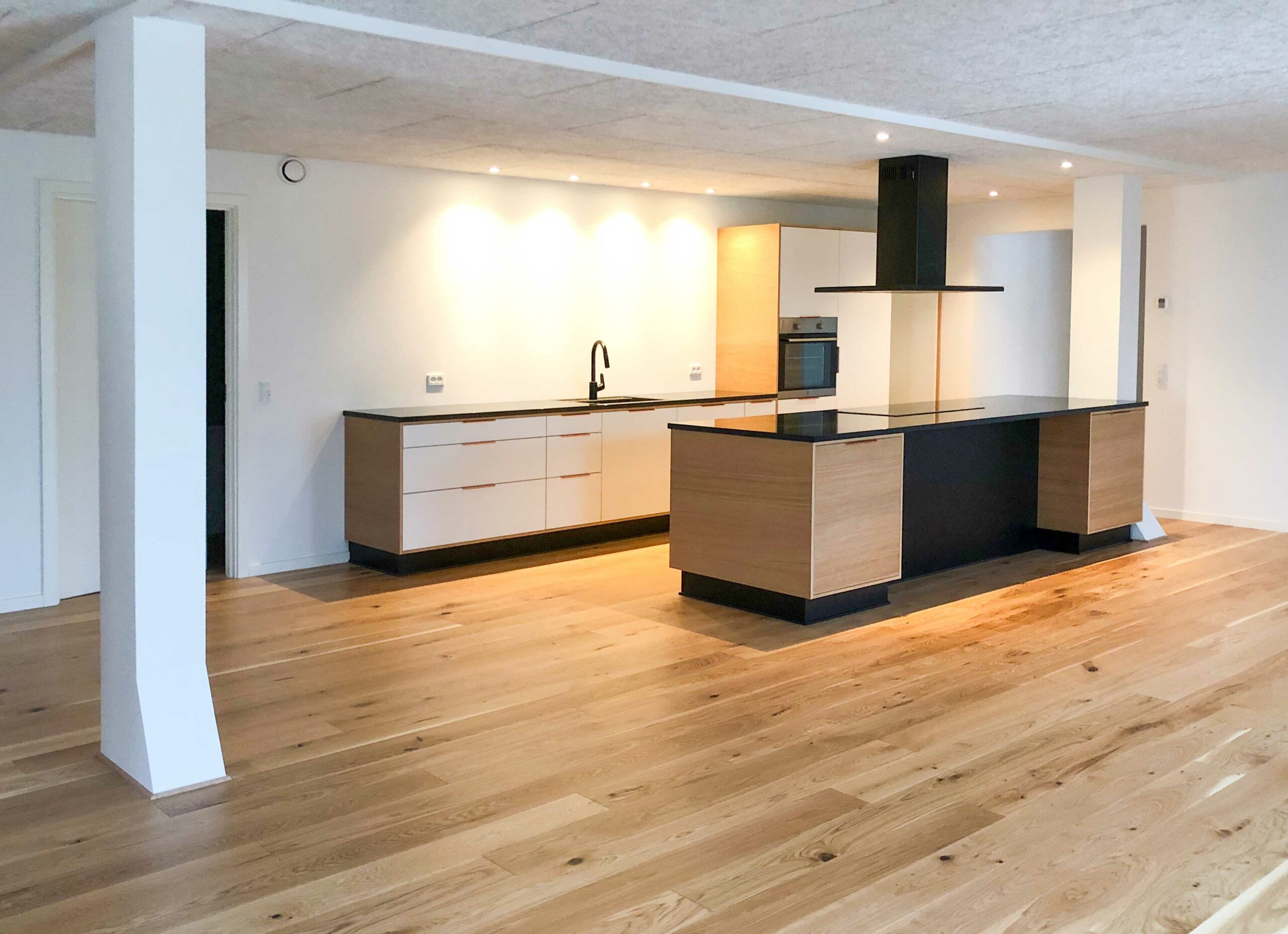 På 1. og 2. sal er der indrettet 8 eksklusive og rummelige lejligheder i størrelser fra 111 til 210 m². Lejlighederne er disponeret med fokus på plads, lys og funktionalitet og fremstår som moderne boliger i historiske rammer. Alle boliger har inventar fra Kreum Køkkener, store opholdsrum og adgang via udvendige altangange i gårdrummet, som samtidig giver private uderum og opholdsmuligheder. Lejlighederne kombinerer høj boligkvalitet med centrale bynære rammer og henvender sig til beboere, der ønsker både rummelighed og byliv.