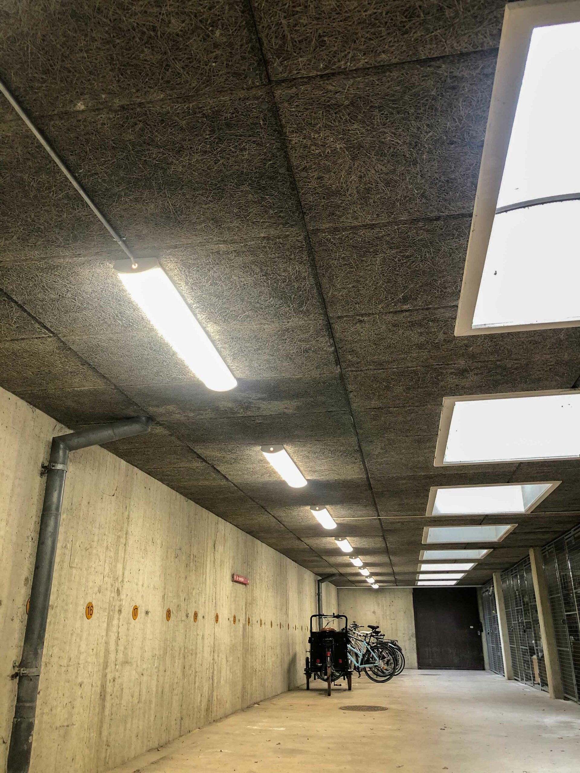 Under bygningen er der etableret en stor parkeringskælder samt disponible rum, toiletter til caféen og festlokaler, både til caféens gæster og til ejendommens beboere. Løsningen understøtter bygningens blandede anvendelse og skaber en funktionel sammenhæng mellem erhverv, bolig og fællesfaciliteter.