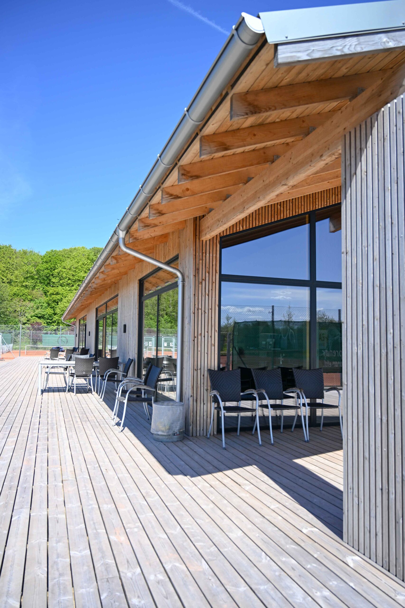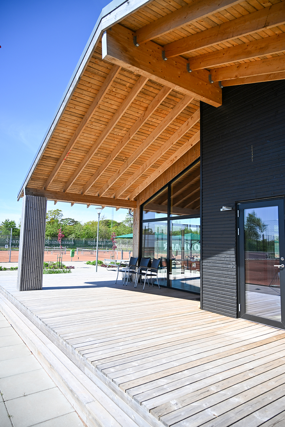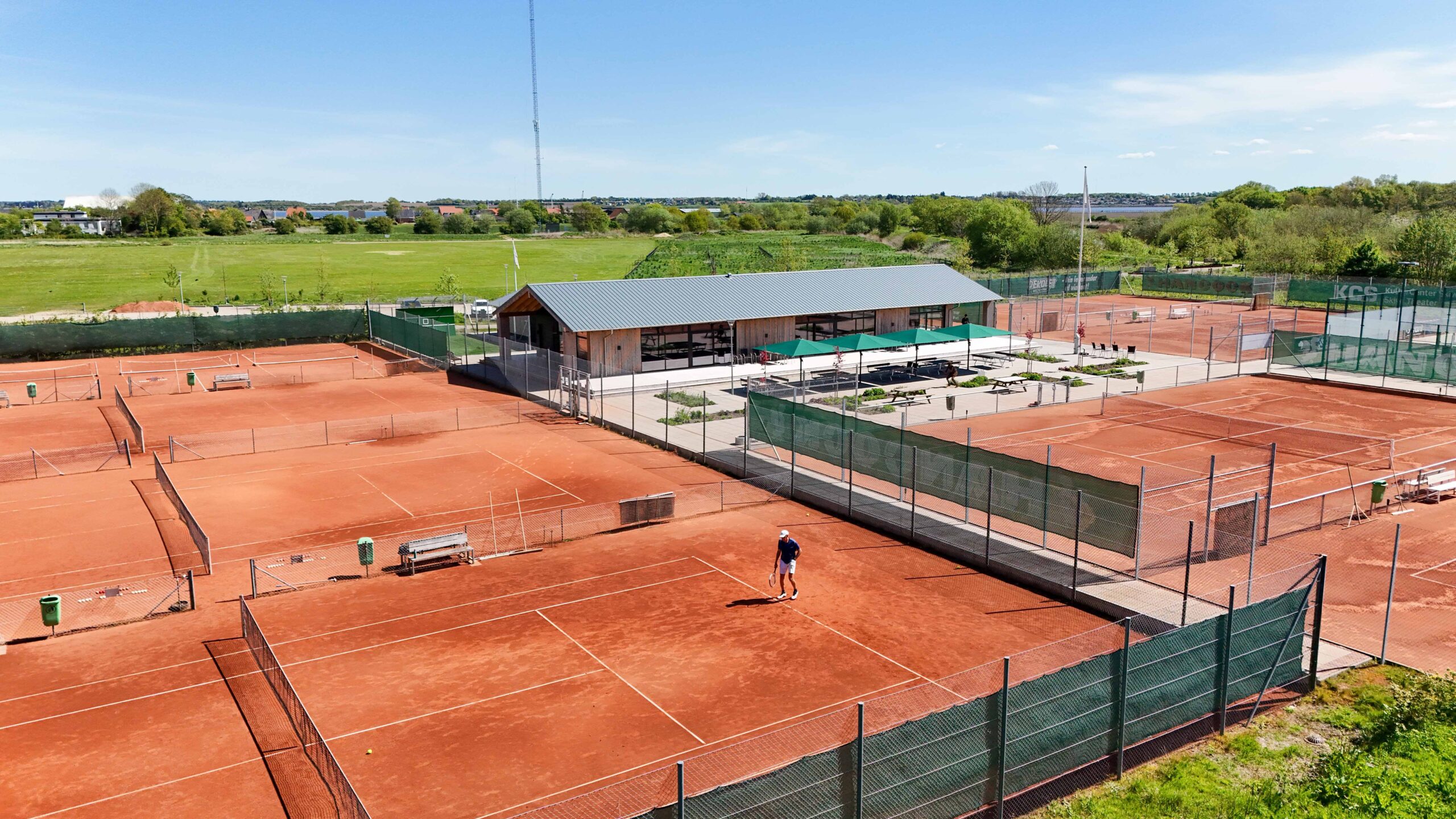 Gjerulff & Lassen har stået for opførelsen af Skive Tennisklubs nye klubhus – en moderne træbygning på 283 m², der er designet til at skabe de bedste rammer for klubbens medlemmer. Klubhusets placering på en hævet plint giver en naturlig overgang til terrænet, mens en 260 m² stor terrasse i betonbelægning skaber et funktionelt udendørsområde mellem huset og banerne.