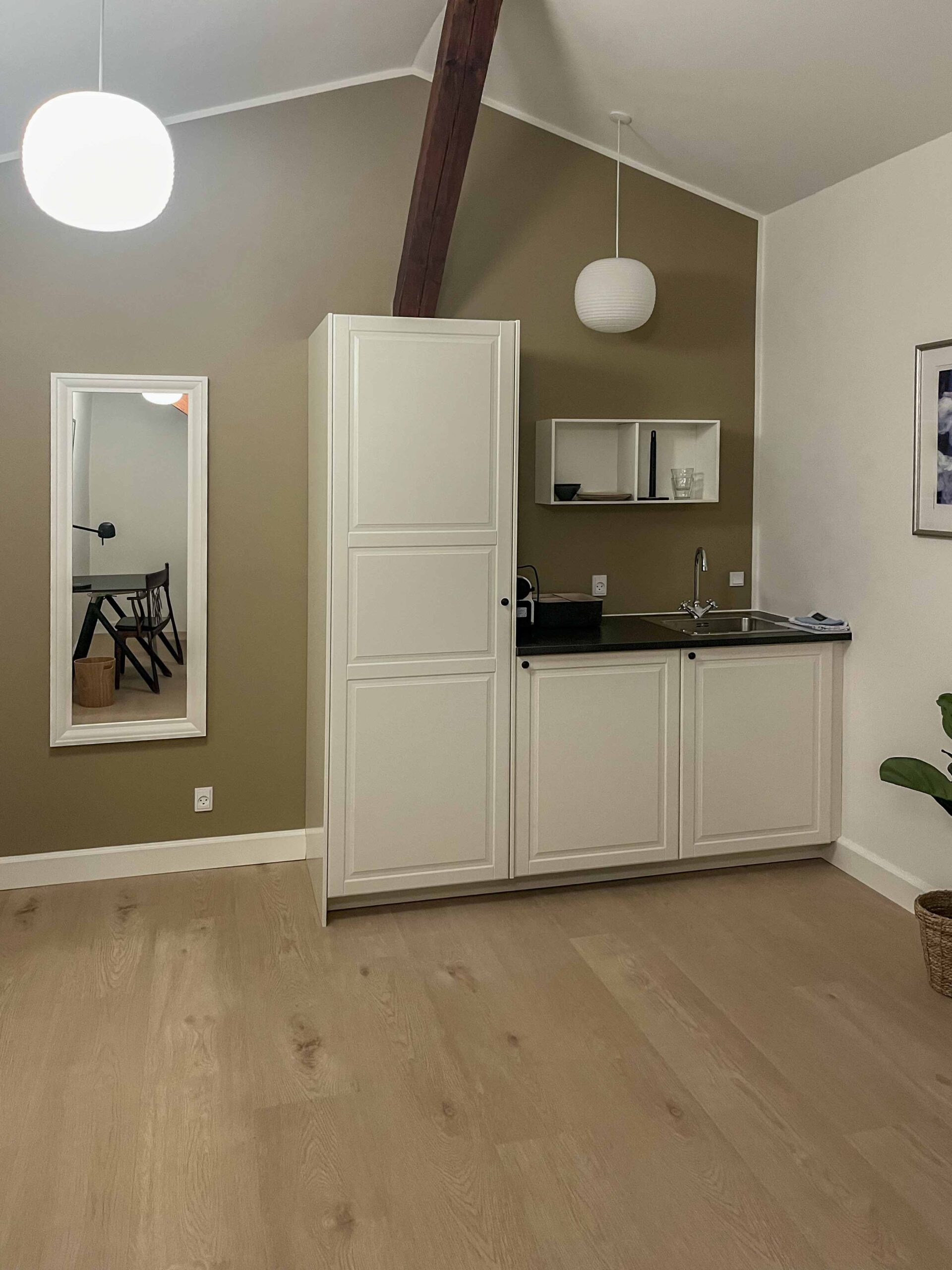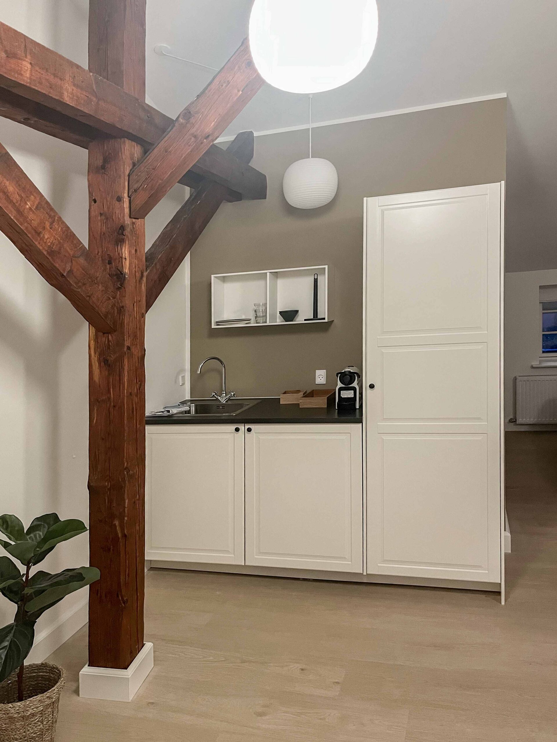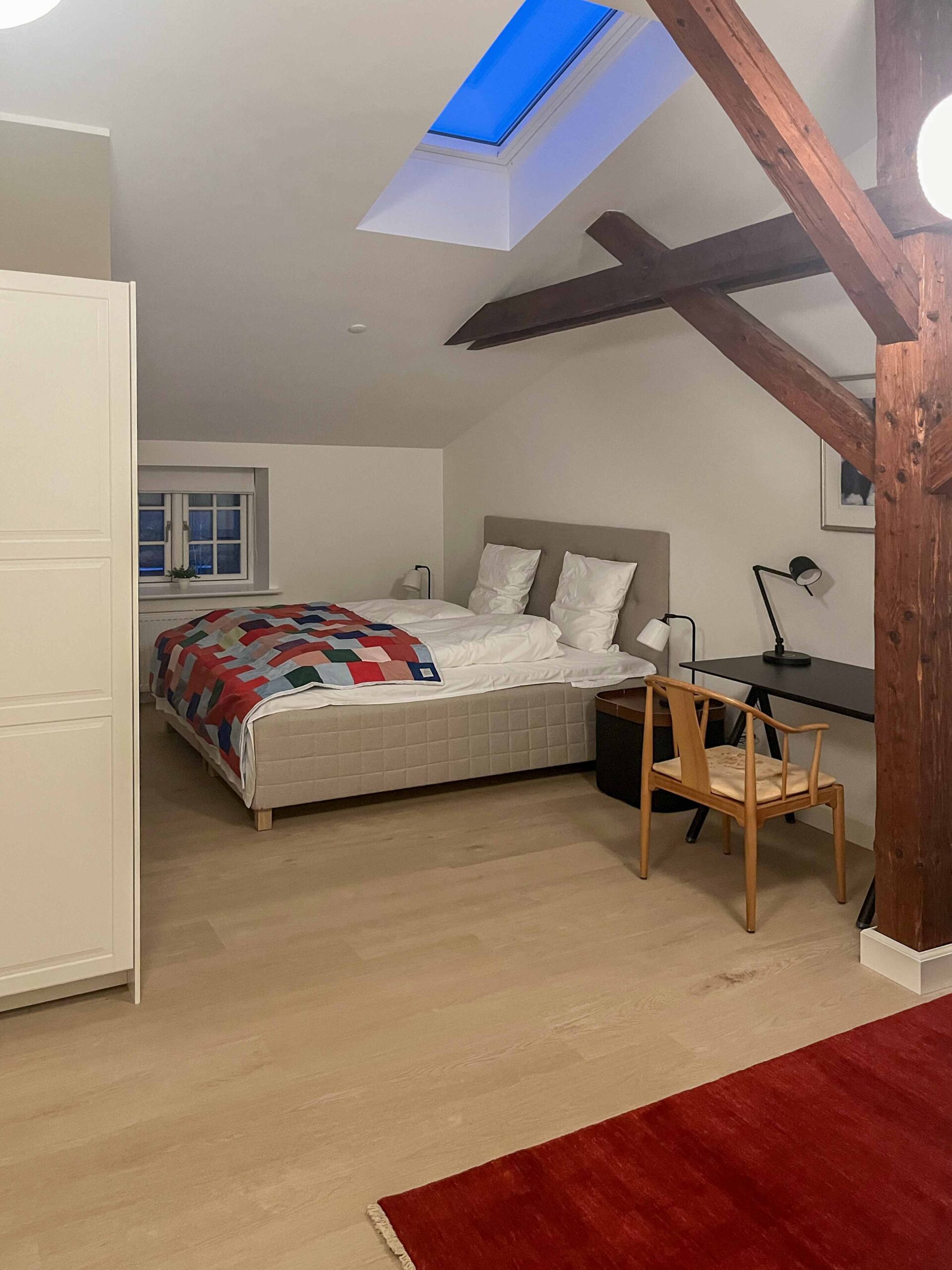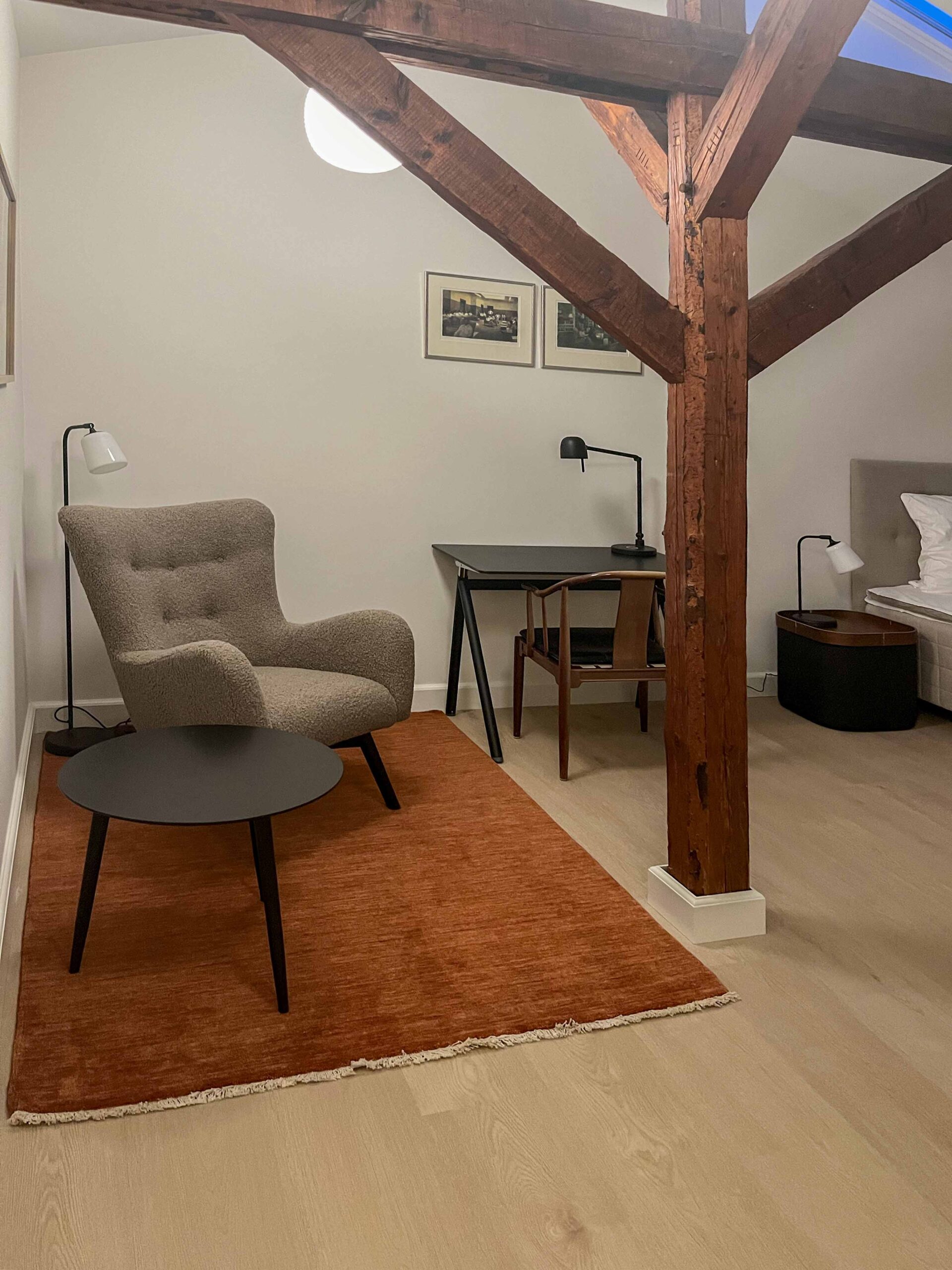 Hos Gjerulff & Lassen har vi haft æren af at totalrenovere en af godsets fløje og omdanne den til smukke hotelværelser til Steensgaards konferencecenter. Renoveringen er udført med stor omhu for at bevare den oprindelige arkitektur, hvor synlige bjælker og historiske detaljer skaber en autentisk atmosfære. Vores tilgang har været at forene moderne komfort med stedets unikke sjæl, så bygningen fortsat kan fortælle sin historie i mange år frem.