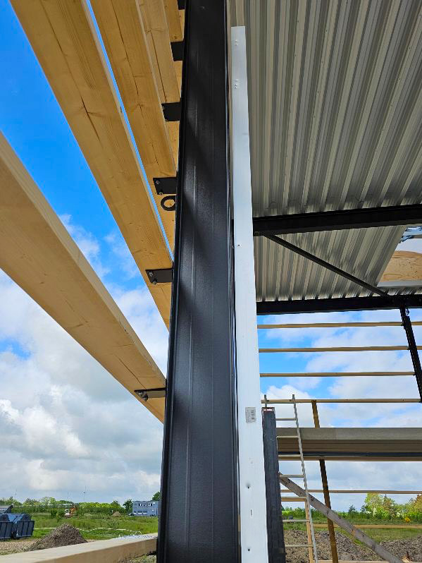 Kaj Ove Madsen har haft en central rolle i projektets planlægning og projektering. Med afsæt i vores erfaringer fra tidligere byggeri hos GreenLab er løsningerne optimeret i tæt dialog med bygherre og rådgivere. Der er arbejdet målrettet med robuste og driftssikre materialer, herunder slagfaste vægopbygninger, stålspær og facadebeklædning i sinusplader, som sikrer et ensartet udtryk i området.