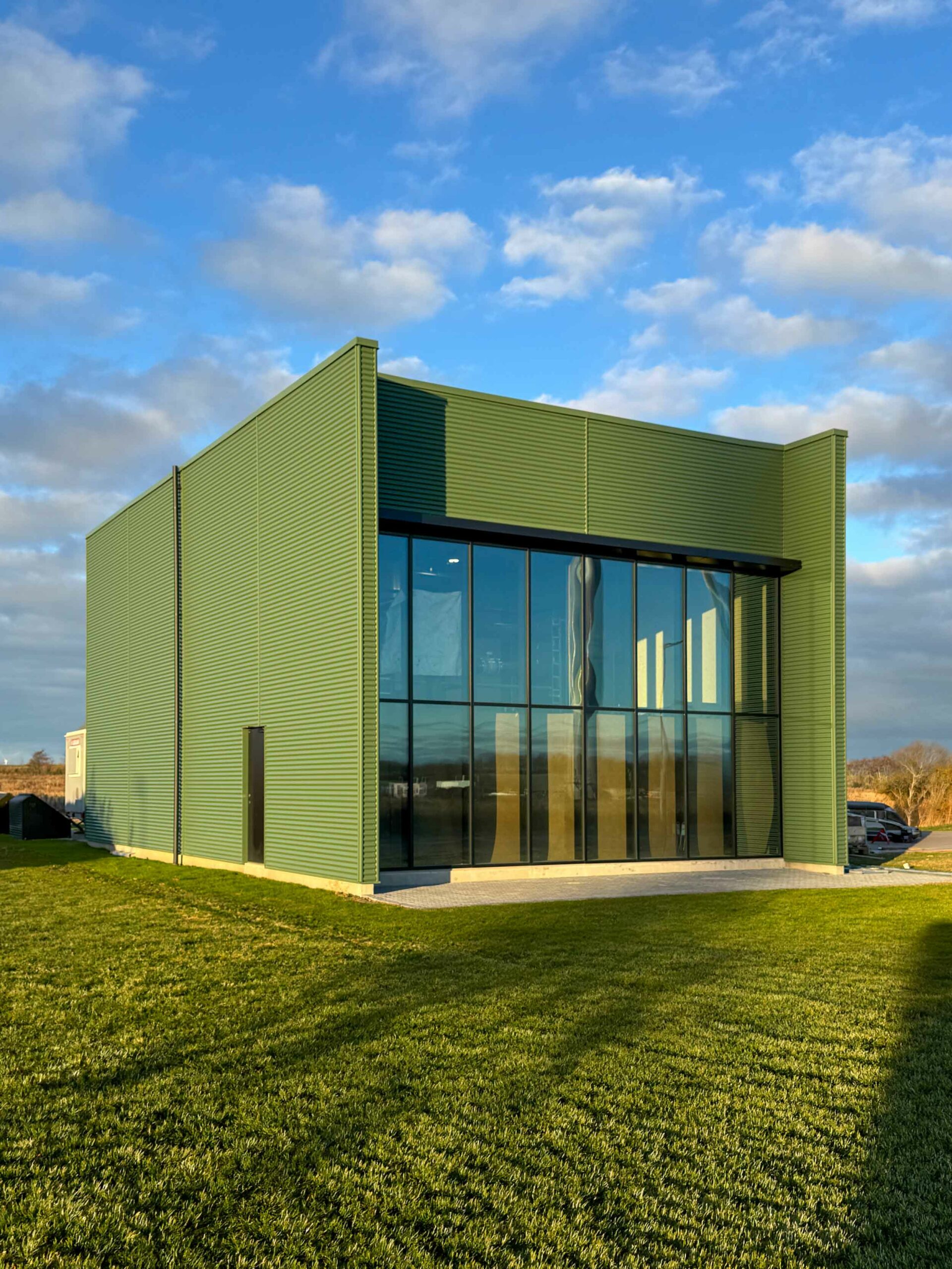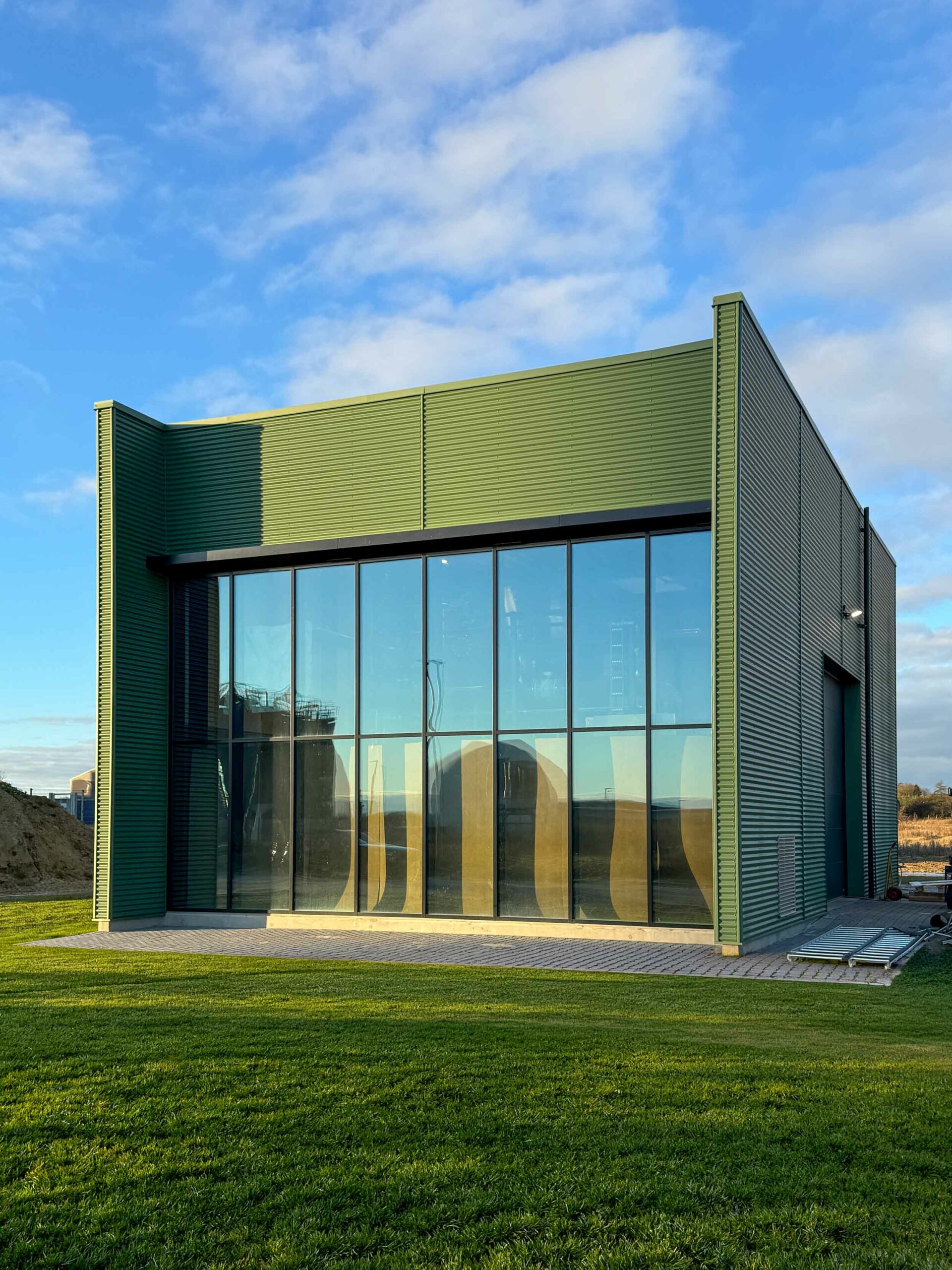 Bygningen er disponeret med fokus på funktionalitet, fremtidssikring og mulighed for senere udvidelse i samme byggesystem. Samtidig er gulvkvoten hævet for at imødegå lokale jordbunds- og grundvandsforhold og dermed sikre en langtidsholdbar løsning. Resultatet er en teknisk velfunderet og fleksibel varmecentral, der understøtter GreenLabs ambition om grøn omstilling gennem samarbejde og solidt håndværk.